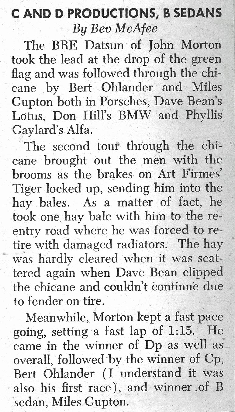 George had told me that the first roadster had been completed and was racing in the D Production class. Bruce Burness, who’d done much of the work on the car, decided to quit BRE, leaving George as the only highly skilled fabricator.