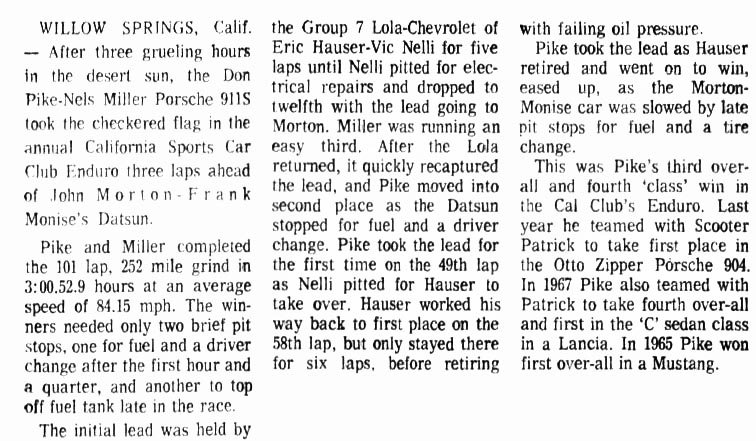 George informed Pete when I won the Southern Pacific B Sports Racing Championship and went on to brag about my welding skills, yet I entertained no thoughts of ever being involved with BRE. I hadn’t really stayed in contact with Pete through the years. The only relationship of any consequence we had had was during the five days we spent together at the Carroll Shelby School of High Performance Driving.”