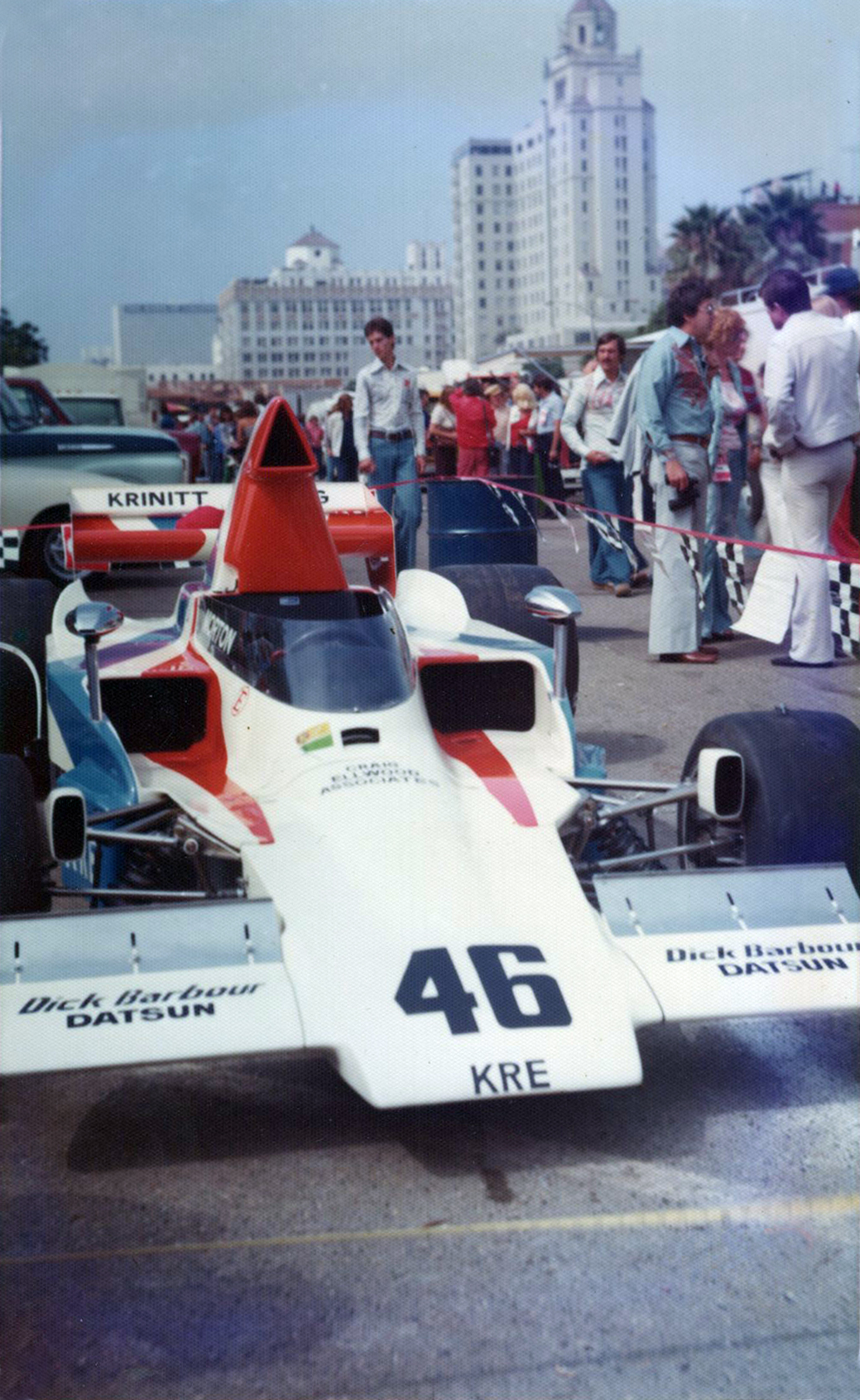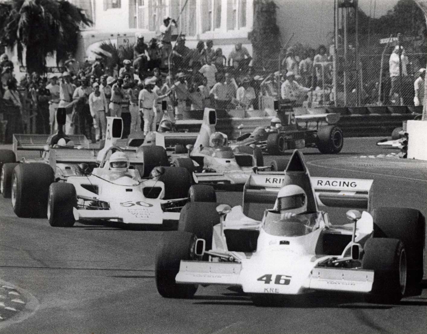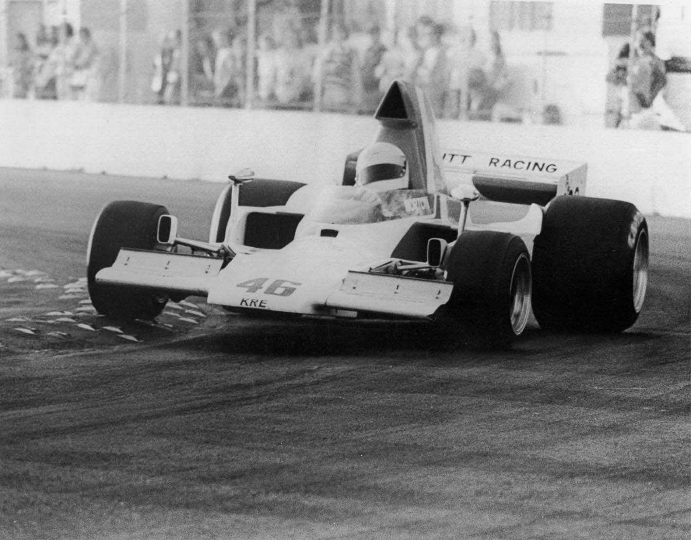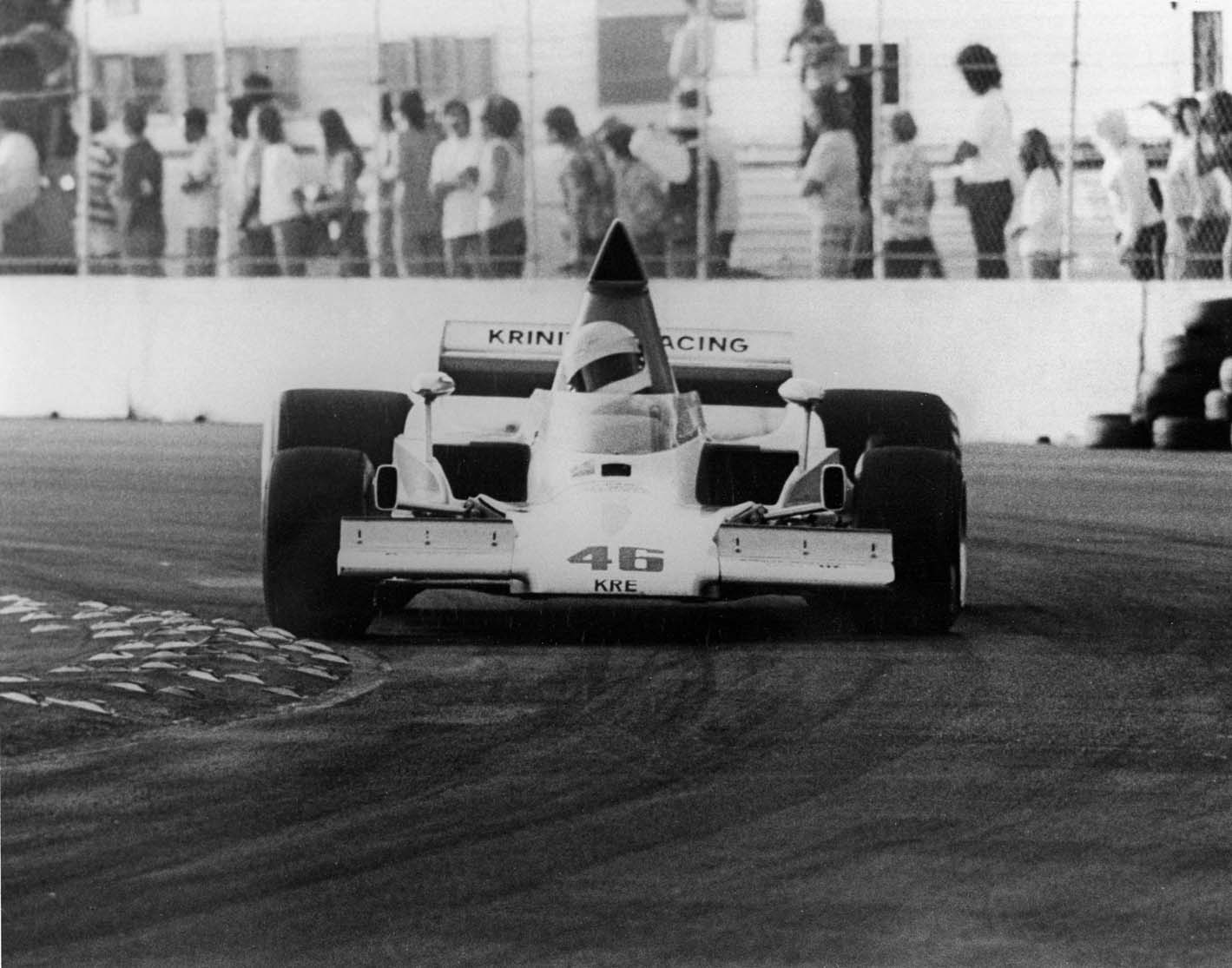 “Joey Cavaglieri and I needed money so we roofed this guy’s house named Perry Krinitt. His wife Florence had inherited some money that he was pretty intent on spending as fast as he could so Joey and I talked him out of buying a cigarette boat and into buying a F5000 car.”