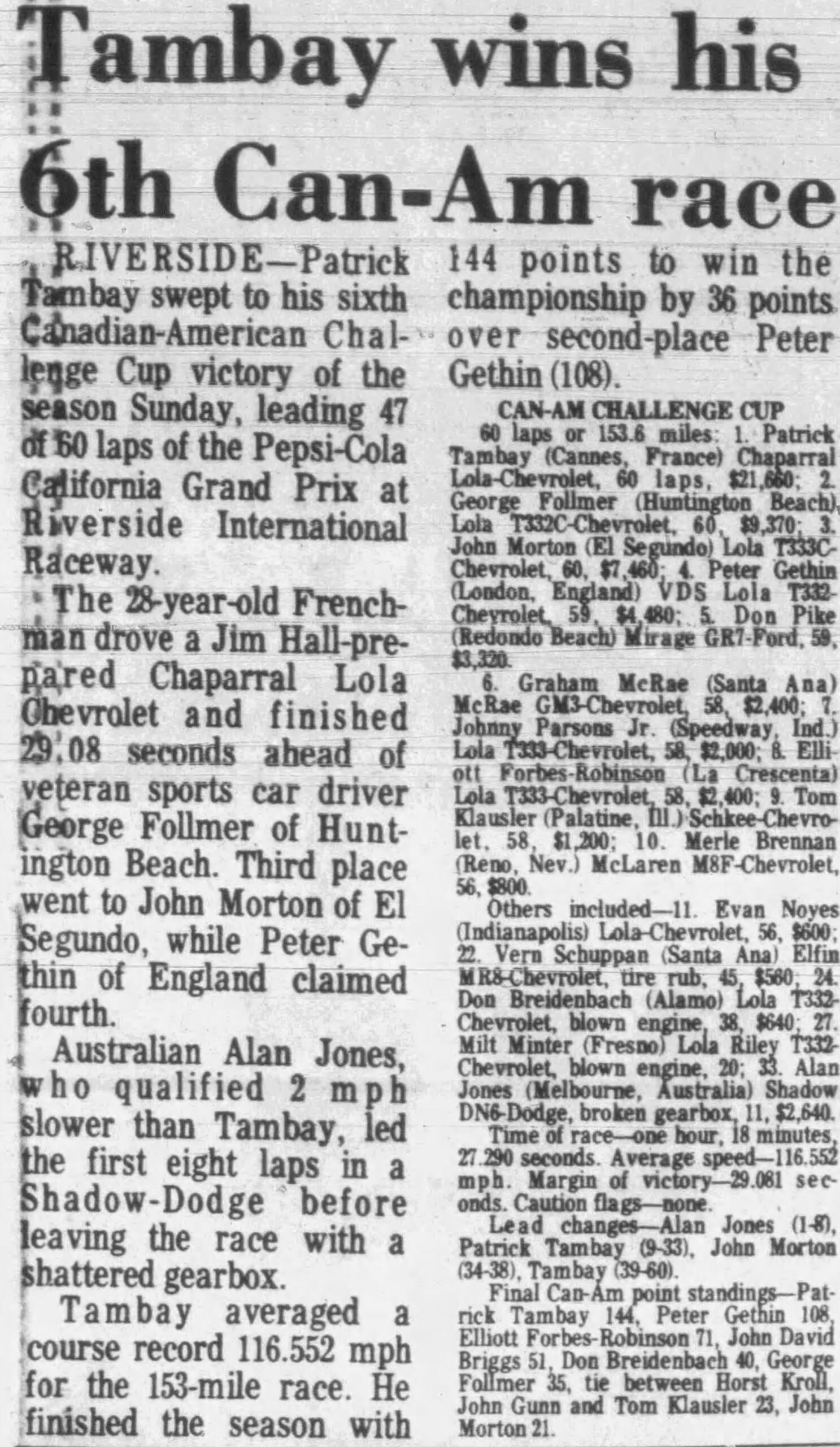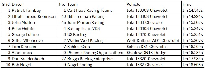 In the inaugural year for the “new” Can-Am in 1977 Morton appeared at Mosport driving a converted Lola 332 with a conversion kit paid for with his movie stunts. He qualified third in the car he had single-handedly prepared but lost his motor in the race.