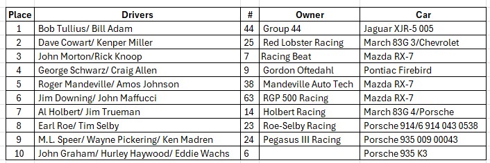 John co-drove the Racing Beat Mazda RX-7 again with Rick Knoop to a 3rd place finish in the GTO class.