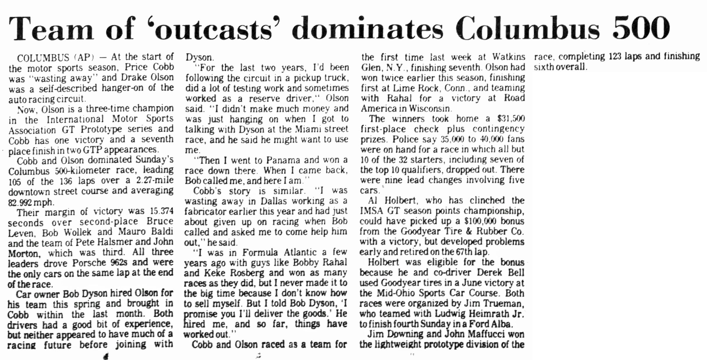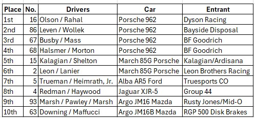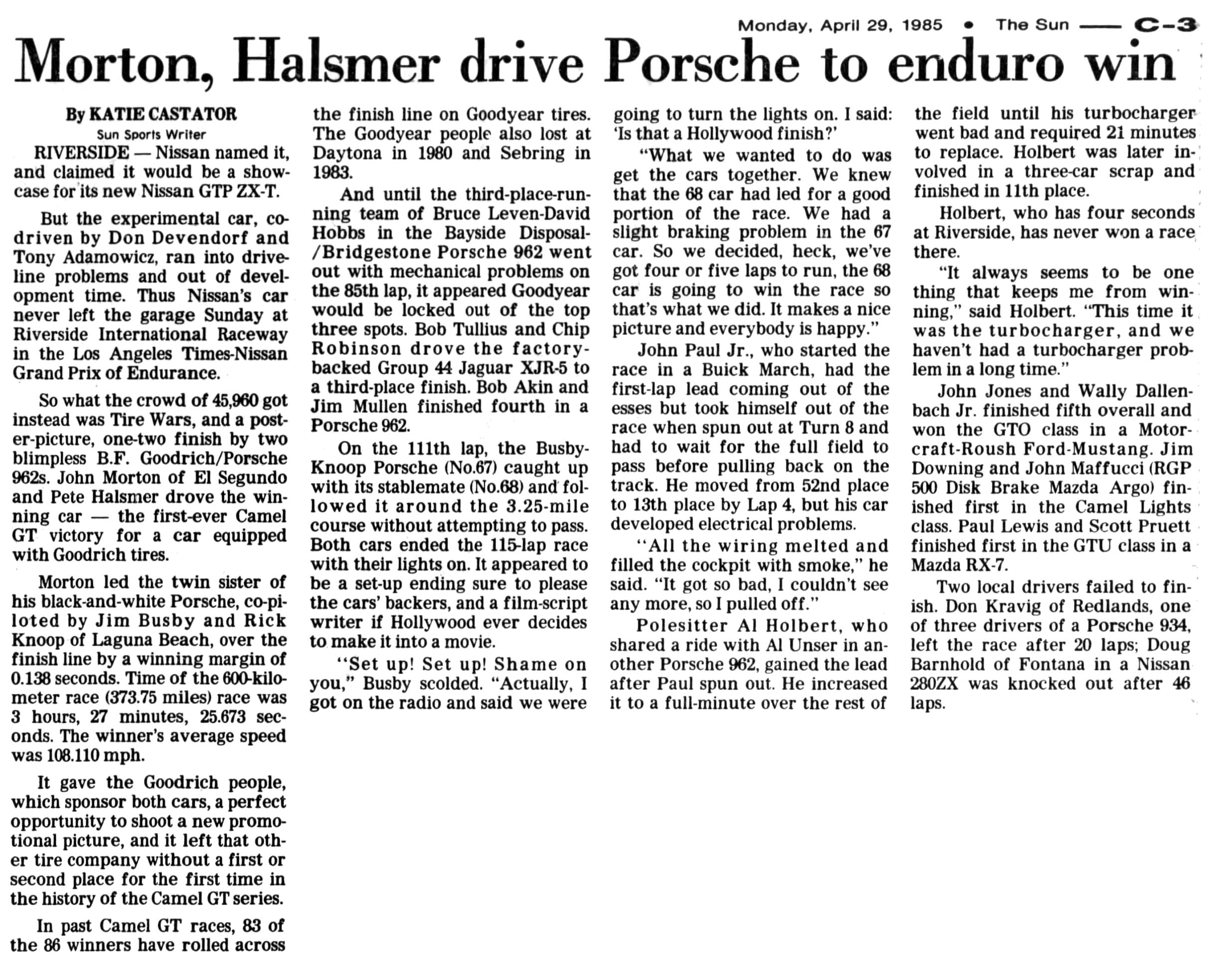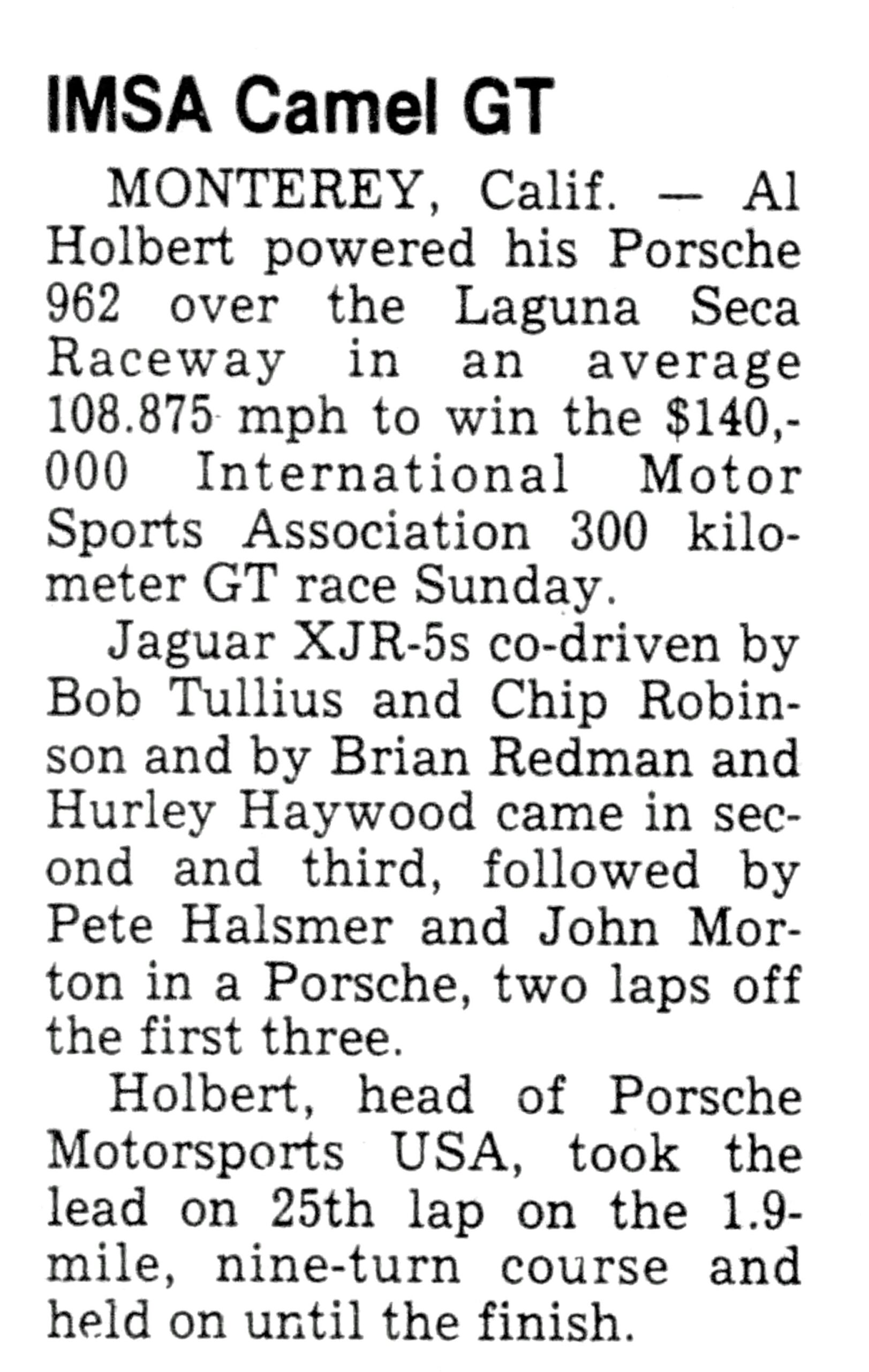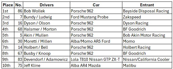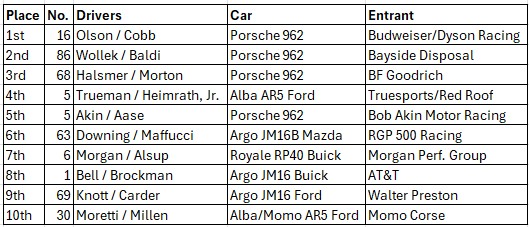 John drove the BG Goodrich Porsche 962 with Pete Halsmer.