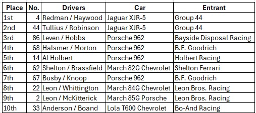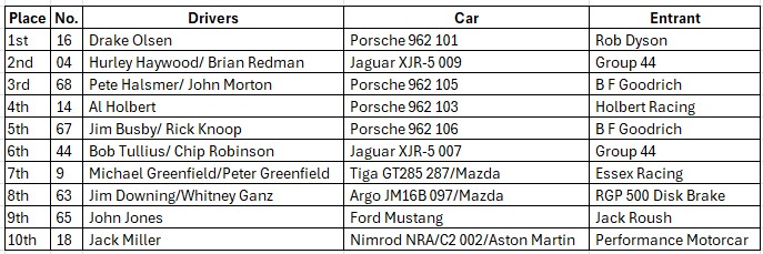 John co-drove with Pete Halsmer and Dieter Quester.